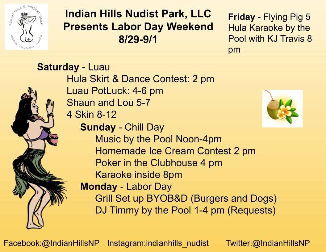 Big Blow-out Party to end the summer. Luau potluck on Saturday.