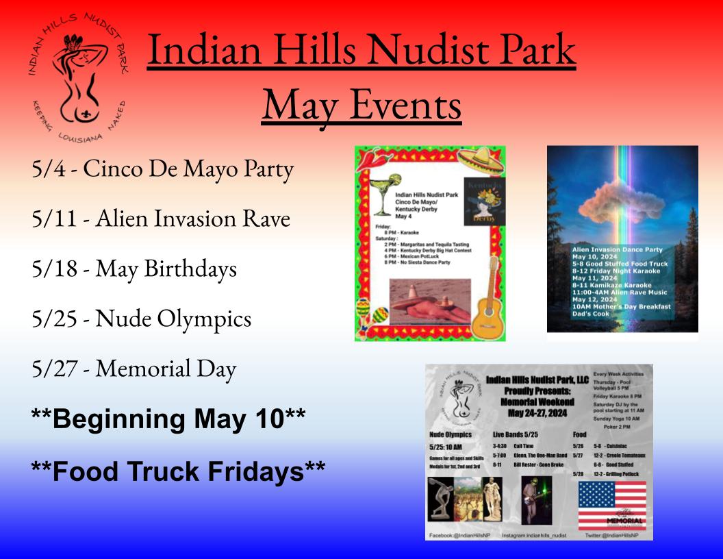 May Birthdays Post author By admin Post date October 16, 2023 No Comments on May Birthdays Calendar Add to Calendar Add to Timely Calendar Add to Google Add to Outlook Add to Apple Calendar Add to other calendar Export to XML When: May 18, 2024 @ 8:00 pm 2024-05-18T20:00:00-05:00 2024-05-18T20:15:00-05:00 Come help us celebrate all the outstanding nudies born in May with cake and singing. ← Alien Invasion Late Night Party → Nude Olympics and Memorial Weekend Leave a Reply Cancel replyYour email address will not be published. Required fields are marked *Comment * Name * Email * Website Save my name, email, and website in this browser for the next time I comment.